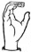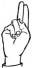 На ћирилици написано БЛАЖА ВАСИЉЕВ састоји се из 12 слова [?]. Исписано ћириличном једноручном азбуком за глувонеме:
